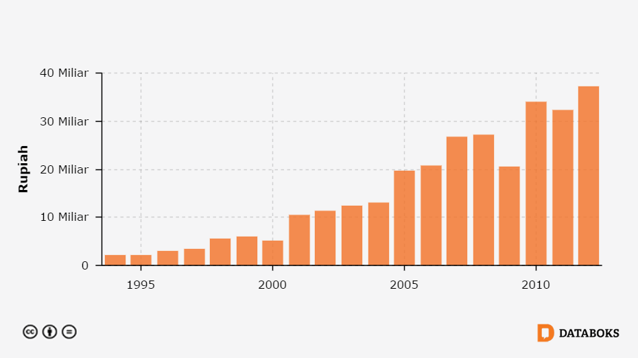 Jumlah Bagi Hasil Pajak di Kabupaten Lombok Barat, Nusa Tenggara Barat 1994 - 2012
