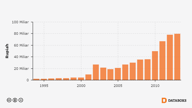 Jumlah Pendapatan Asli Daerah (PAD) di Kabupaten Bondowoso, Jawa Timur 1994 - 2013