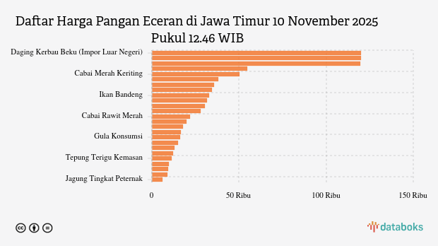 Berikut daftar lengkap harga 25 bahan pangan di Jawa Timur menurut Bapanas 10 November 2025 pukul 12.46 WIB.