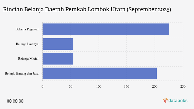 Selama periode Januari 2025 hingga September 2025, realisasi Belanja Daerah Pemkab Lombok Utara mencapai Rp537,24 miliar atau setara 46,89% dari anggaran Belanja Daerah 2025.