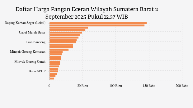 Berikut daftar lengkap harga 24 bahan pangan di Sumatera Barat menurut Bapanas 2 September 2025 pukul 12.37 WIB.