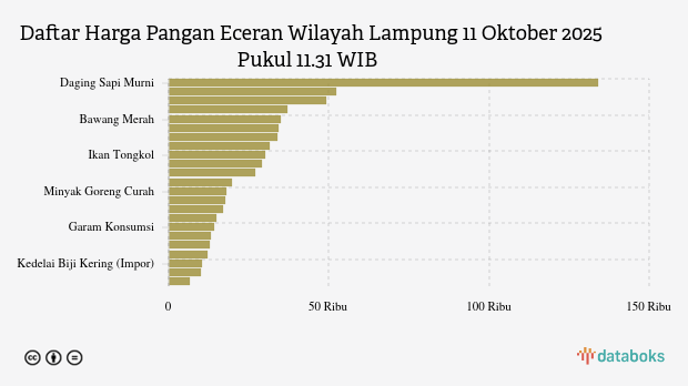 Berikut daftar lengkap harga 23 bahan pangan di Lampung menurut Bapanas 11 Oktober 2025 pukul 11.31 WIB.