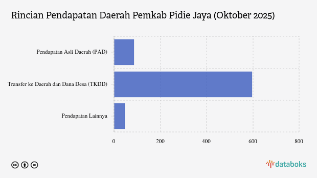 Merujuk data Anggaran Pendapatan dan Belanja Daerah (APBD) 2025, anggaran Pendapatan Daerah Pemerintah Kabupaten (Pemkab) Pidie Jaya, Provinsi Aceh, sebesar Rp961,02 miliar.