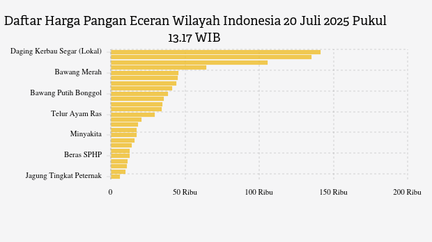 Berikut daftar lengkap harga 25 bahan pangan di Indonesia menurut Bapanas 20 Juli 2025 pukul 13.17 WIB.