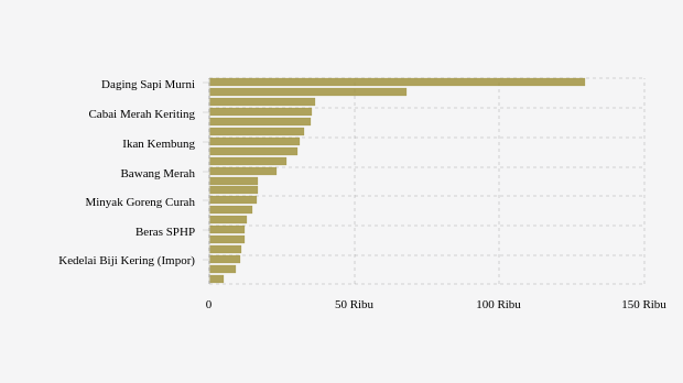 - Daging Sapi Murni: Rp129.490 per kg (turun 0,54%)