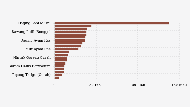 - Gula Konsumsi: Rp17.420 per kg (turun 0,4%)