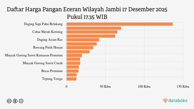Berikut daftar lengkap harga 15 bahan pangan di Jambi menurut SP2KP Kemendag 17 Desember 2025 pukul 17.35 WIB.