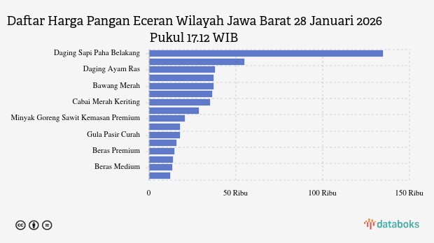 28. Daging Sapi per Kg harian di Pasar Tradisional Menurut Provinsi Rp161,25 ribu (naik 1.03%)