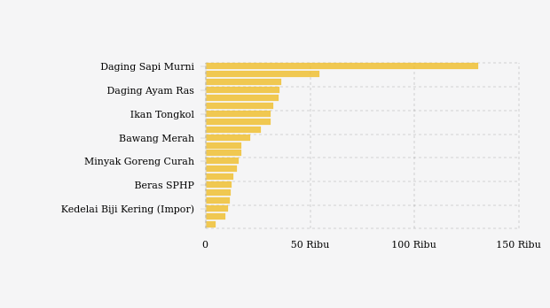 Komoditas yang naik harga yaitu ikan tongkol, kedelai biji kering (impor), beras medium, bawang putih bonggol, dan beras sphp.