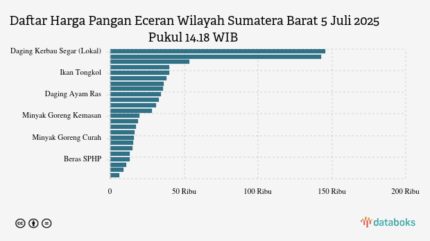 Berikut daftar lengkap harga 24 bahan pangan di Sumatera Barat menurut Bapanas 5 Juli 2025 pukul 14.18 WIB.