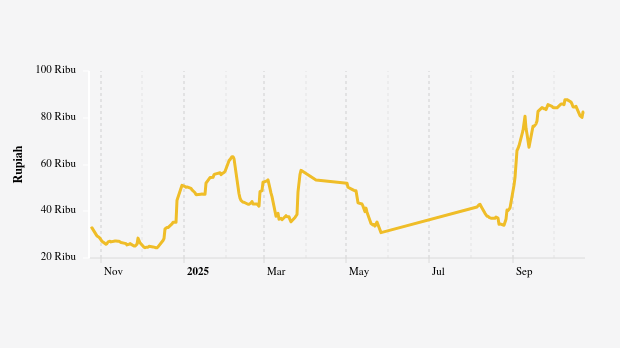 Sedangkan harga cabai merah keriting harian di pasar tradisional dalam tiga bulan terakhir di Aceh telah mengalami kenaikan sebesar 108,82% dari sebelumnya yang tercatat di harga Rp39,1 ribu.