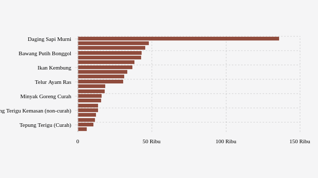 - Daging Sapi Murni: Rp135.650 per kg (naik 0,18%)