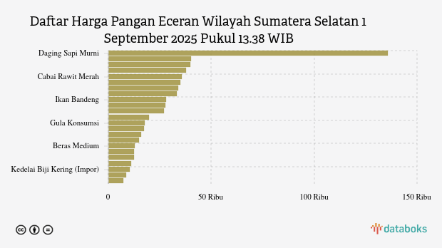 Berikut daftar lengkap harga 23 bahan pangan di Sumatera Selatan menurut Bapanas 1 September 2025 pukul 13.38 WIB.