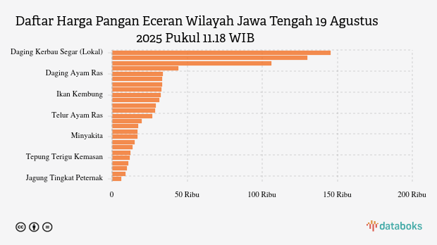 Berikut daftar lengkap harga 25 bahan pangan di Jawa Tengah menurut Bapanas 19 Agustus 2025 pukul 11.18 WIB.