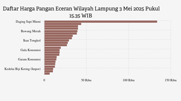 Berikut daftar lengkap harga 23 bahan pangan di Lampung menurut Bapanas 3 Mei 2025 pukul 15.35 WIB.