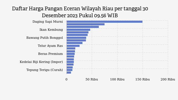 Berikut daftar lengkap harga 20 bahan pangan di Riau menurut Bapanas per tanggal 30 Desember 2023 pukul 09.56 WIB.