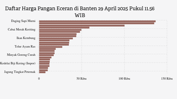 Berikut daftar lengkap harga 25 bahan pangan di Banten menurut Bapanas 29 April 2025 pukul 11.56 WIB.