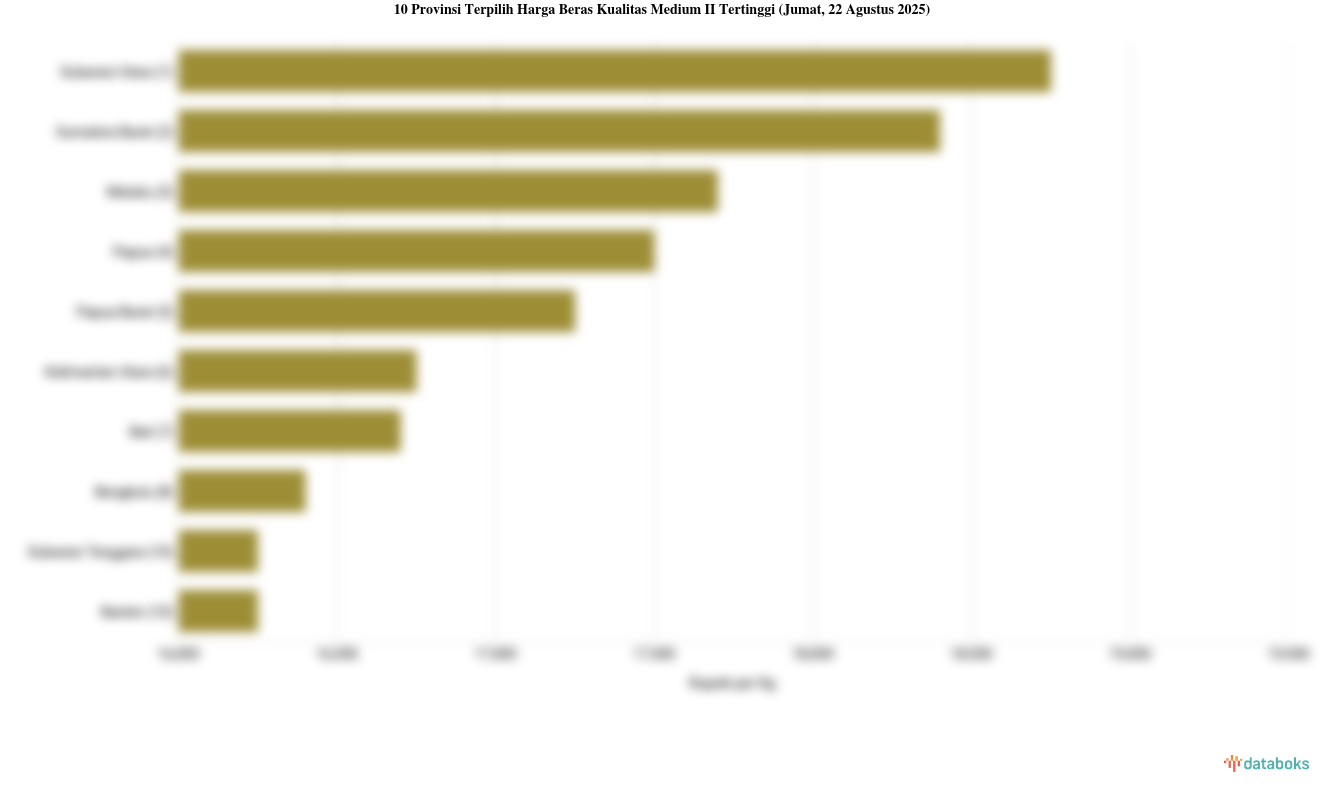 Pusat Informasi Harga Pangan Strategis Nasional mencatat rata-rata harga beras kualitas medium II (per kg) harian di pasar modern di beberapa provinsi telah menyentuh angka Rp.15.850 per kg, data per Jumat, 22 Agustus 2025. Secara keseluruhan, rata-rata minggu ini naik dibandingkan rata-rata pekan sebelumnya yang tercatat Rp.15.750 per kg.
