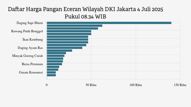 Berikut daftar lengkap harga 21 bahan pangan di DKI Jakarta menurut Bapanas 4 Juli 2025 pukul 08.34 WIB.