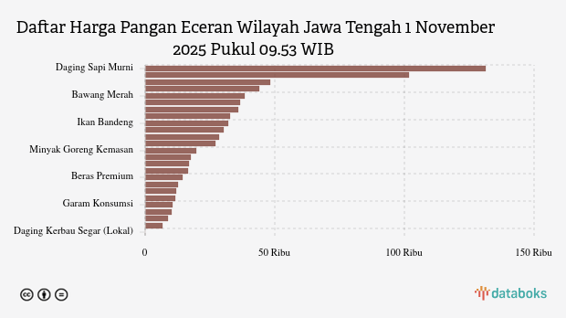 Berikut daftar lengkap harga 25 bahan pangan di Jawa Tengah menurut Bapanas 1 November 2025 pukul 09.53 WIB.