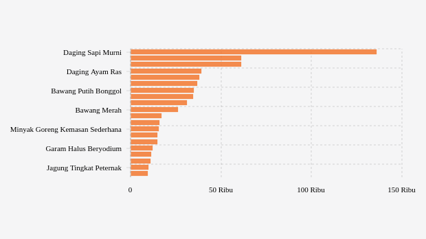 - Gula Konsumsi: Rp17.200 per kg (naik 0,35%)