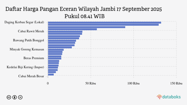 Berikut daftar lengkap harga 25 bahan pangan di Jambi menurut Bapanas 17 September 2025 pukul 08.41 WIB.