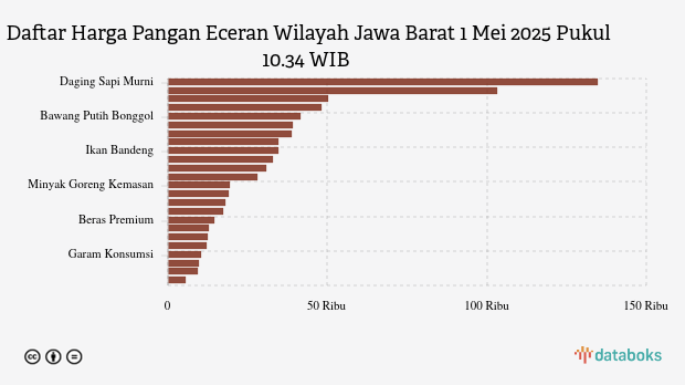 Berikut daftar lengkap harga 24 bahan pangan di Jawa Barat menurut Bapanas 1 Mei 2025 pukul 10.34 WIB.