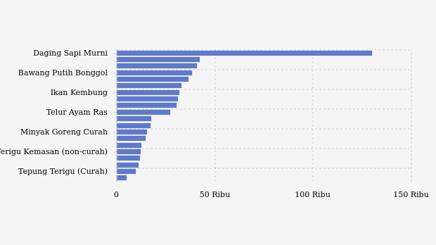 - Gula Konsumsi: Rp17.370 per kg (naik 0,4%)