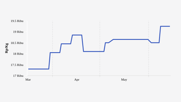 Harga gula pasir kualitas premium di Papua Barat dijual dengan harga Rp 19.250 per kg pada Selasa, 14 Juni 2022. Dibandingkan wilayah lain, perubahan harga di wilayah ini merupakan yang tertinggi dalam sepekan terakhir.