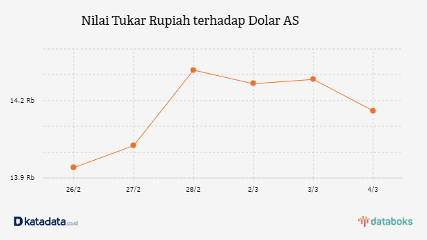 Nilai tukar rupiah dibuka menguat ke level Rp 14.160 per dolar Amerika Serikat (AS) pada pembukaan perdagangan Rabu (4/3). Hingga pukul 09.42 WIB, rupiah bergerak melemah ke posisi Rp 14.167 per dolar AS.
