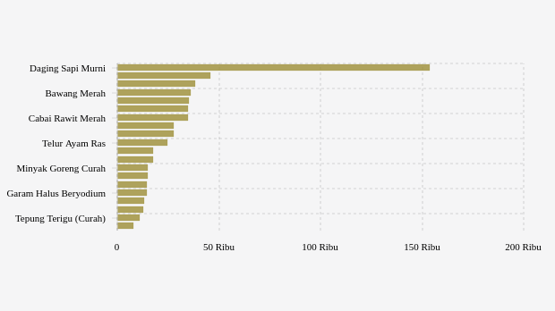 - Daging Sapi Murni: Rp153.820 per kg (naik 0,37%)