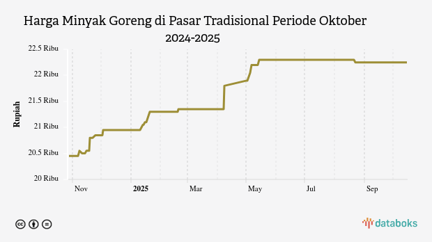 Adapun terhadap harga sebulan terakhir, perkembangan harga minyak goreng harian di pasar tradisional tidak mengalami perubahan dari sebelumnya yang tercatat sebesar Rp22,25 ribu .