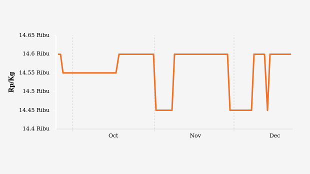 Sementara bila dilihat perubahan harga dibandingkan 30 hari sebelumnya, harga beras kualitas super II di wilayah ini tidak mengalami perubahan.
