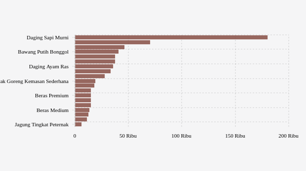 - Daging Sapi Murni: Rp180.000 per kg (naik 3,75%)