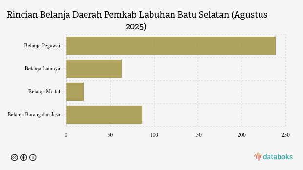 Selama periode Januari 2025 hingga Agustus 2025, realisasi Belanja Daerah Pemkab Labuhan Batu Selatan sebesar Rp407,76 miliar atau setara 38,51% dari anggaran Belanja Daerah 2025.