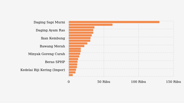 - Daging Sapi Murni: Rp129.780 per kg (turun 0,13%)