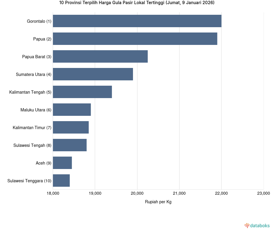 - Gula Konsumsi: Rp17.589 per kg (turun 0,27%)