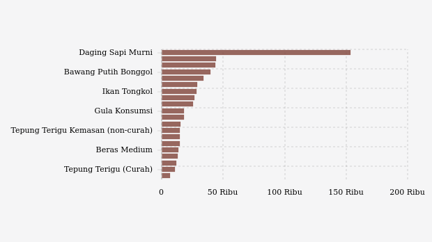 - Gula Konsumsi: Rp18.110 per kg (naik 0,06%)