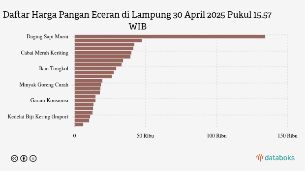 Berikut daftar lengkap harga 23 bahan pangan di Lampung menurut Bapanas 30 April 2025 pukul 15.57 WIB.