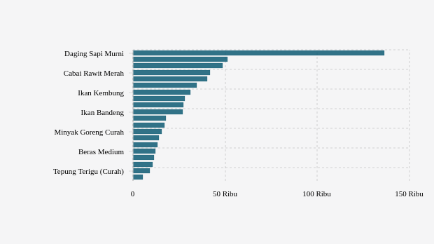 Komoditas cabai merah keriting naik paling tinggi Rp2.610 (5,37%) menjadi Rp51.190 per kg. Adapun harga bawang merah turun paling rendah Rp1.620 (3,23%) menjadi Rp48.520 per kg.