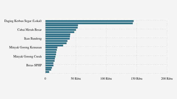 - Beras SPHP: Rp12.970 per kg (naik 0,02%)