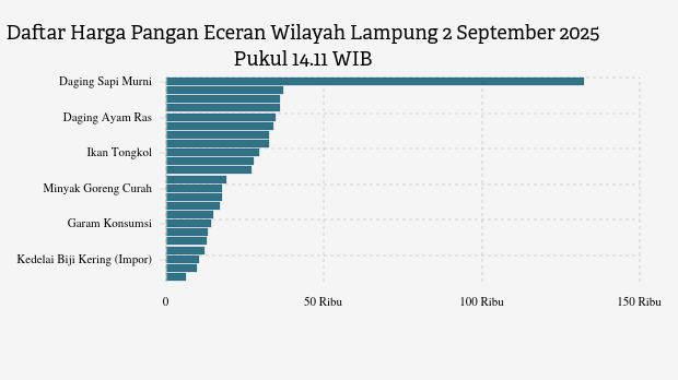 Berikut daftar lengkap harga 23 bahan pangan di Lampung menurut Bapanas 2 September 2025 pukul 14.11 WIB.