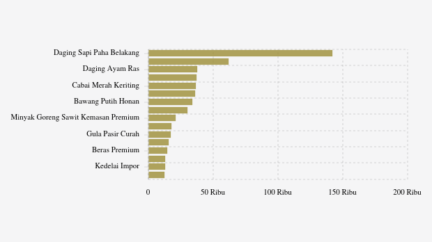 - Daging Sapi Paha Belakang: Rp145.313 per kg (naik 0,43%)