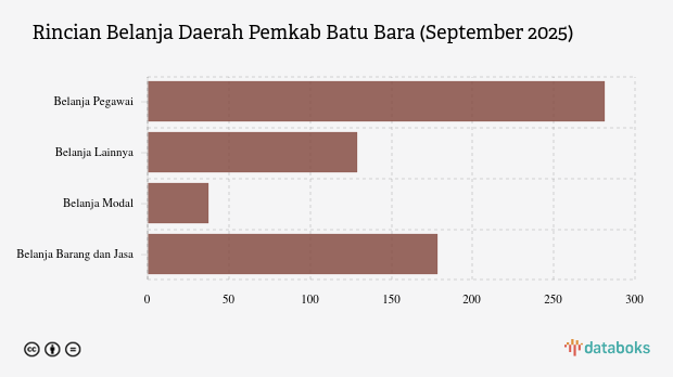 Berdasarkan data Anggaran Pendapatan dan Belanja Daerah (APBD) 2025, anggaran Belanja Daerah Pemerintah Kabupaten (Pemkab) Batu Bara, Provinsi Sumatera Utara, mencapai Rp1.286,18 miliar.