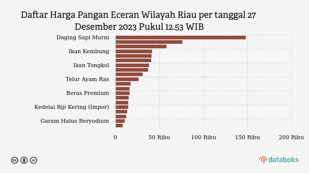 Berikut daftar lengkap harga 20 bahan pangan di Riau menurut Bapanas per tanggal 27 Desember 2023 pukul 12.53 WIB.