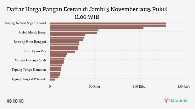 Berikut daftar lengkap harga 25 bahan pangan di Jambi menurut Bapanas 5 November 2025 pukul 11.00 WIB.