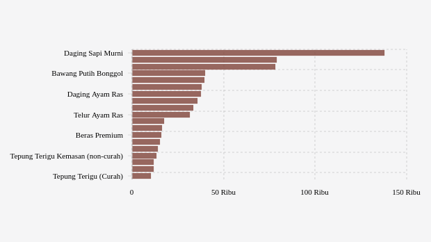 - Gula Konsumsi: Rp16.300 per kg (turun 0,55%)