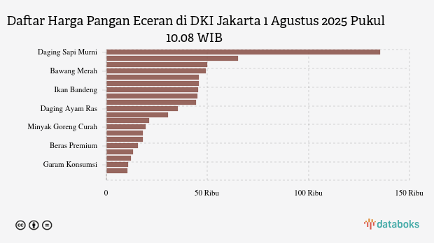 Berikut daftar lengkap harga 21 bahan pangan di DKI Jakarta menurut Bapanas 1 Agustus 2025 pukul 10.08 WIB.