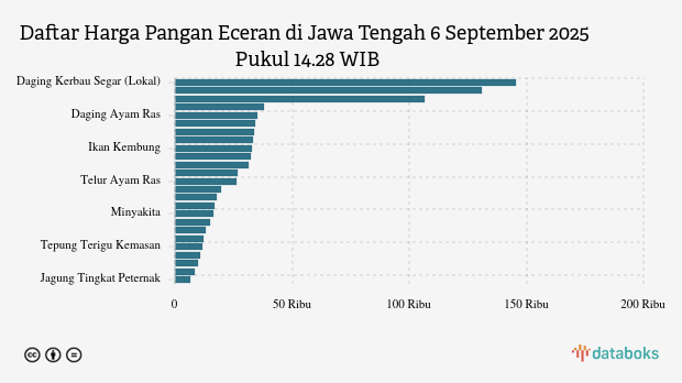 Berikut daftar lengkap harga 25 bahan pangan di Jawa Tengah menurut Bapanas 6 September 2025 pukul 14.28 WIB.