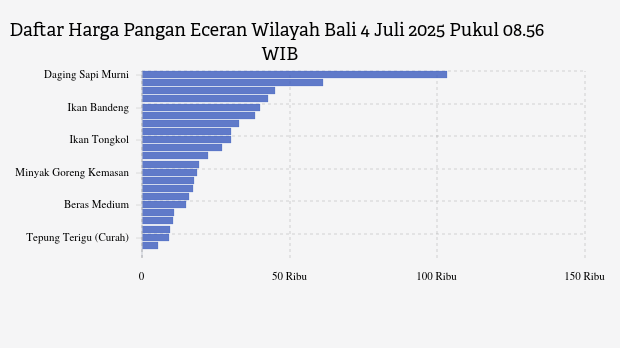 Berikut daftar lengkap harga 23 bahan pangan di Bali menurut Bapanas 4 Juli 2025 pukul 08.56 WIB.